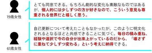 これは、余力の少ない現代社会において、自分を一度に大きく塗り替えるのではなく積み重ねの中で少しずつ静かに変容していくことが、現代の生活者の自己更新のあり方になっているという見立てです。