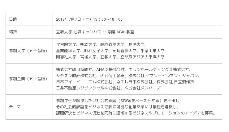 本コンテストを通して、将来の日本を担う若い力と日本を代表する大手企業の共創によりCSV事業、プロモーションを創出し、企業や地球環境にとってサスティナブルな社会の実現へ貢献することを目的として開催いたしました。