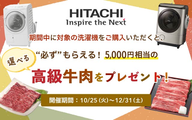 株式会社ストリーム(東京都港区:代表取締役社長 齊藤 勝久)は、ストリーム社が運営するインターネット通販サイト『ECカレント』(https://www.ec-current.com/ )において、対象商品の日立製ドラム式洗濯乾燥機を購入すると、もれなく国産牛など食材をプレゼントするキャンペーンを実施しています。