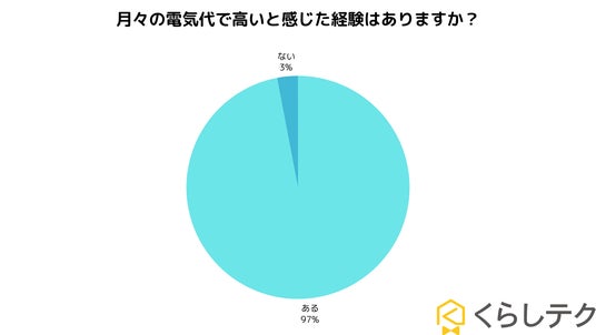アンケート結果によると、「電気代が高いと感じたことがある」と答えた人は、97%となりました。