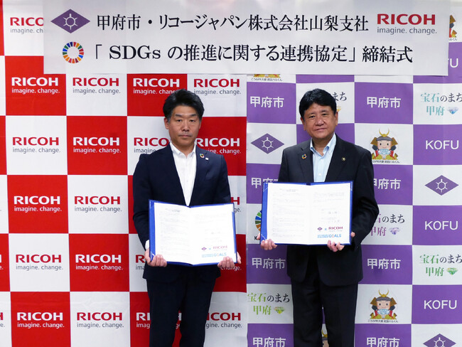 リコージャパン株式会社 山梨支社(支社長:田中 弘輝)は、6月14日に山梨県甲府市(市長:樋口 雄一)とSDGsに関する連携協定を締結しました。リコーグループが山梨県の自治体と締結するのは初となります。