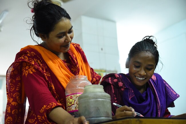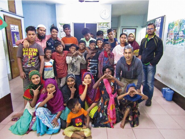 2011年9月にKnKが首都ダッカで開設した「ほほえみドロップインセンター」では、ストリートチルドレンや極貧層の子どもたちを対象に、朝食と昼食、ケガの応急手当て、シャワーや洗濯をして身なりを清潔に保つ場所を提供するほか、識字教育やレクリエーションの機会、基本的な生活習慣・社会ルールなどを学ぶ機会を設けています。