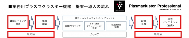 そこで、業務用プラズマクラスター機器の一層の普及拡大を図るため、各種施設への導入時のプランニング(設計・コンサルティング)から設置工事、保守サービスまでを一貫して行える「Plasmacluster Professionalメンバーズ(認定販売店制度)」を新たに全国規模で導入し、販売店への運営・サポート体制を強化することといたしました。