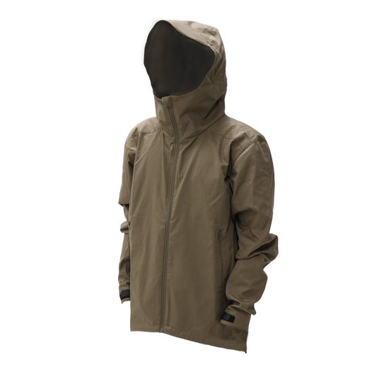 - 蒸れにくい従来のレインウェアの防水性による蒸れ感がなく、雨の日はもちろん、晴れの日も快適に着用できます。防水(ポリウレタンのコーティング)ではなく、生地の編み目の穴をつぶさない特殊な撥水加工により、Tシャツと同じくらいの通気性があります。
