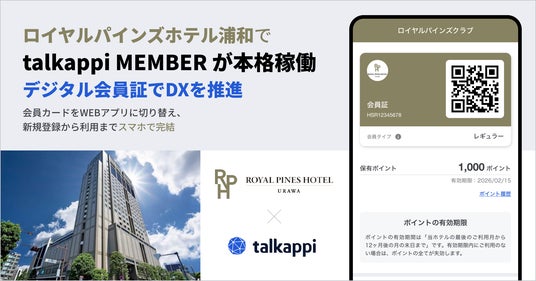 株式会社アクティバリューズ(本社:東京都渋谷区)が開発した、観光・宿泊施設向けのSaaS型会員システム「talkappi MEMBER(トーカッピ・メンバー)」初の導入施設であるロイヤルパインズホテル浦和は、2025年2月18日にサービスインし、会員カードからWEBアプリへの切り替えを開始しました。