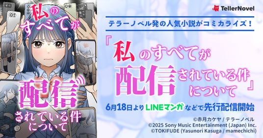 株式会社テラーノベル(本社:東京都港区、代表取締役社長:蜂谷宣人)はこの度、累計DL数760万突破(※)の小説共有プラットフォーム「テラーノベル(https://teller.jp/)」発の人気小説『私のすべてが配信されている件について』がコミカライズされ、2025年6月18日(水)より以下ストアでの先行配信を開始することをお知らせいたします。
