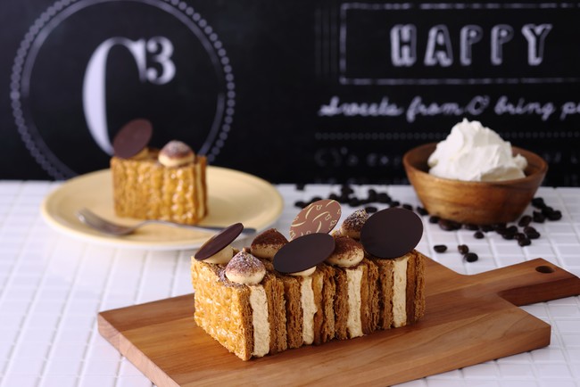 シーキューブでは初となる店内厨房で数量限定で作られる「ティラミス・ミルフィーユ」と「ティラミスL」。サクサク香ばしいパイ生地のミルフィーユは、取り分けやすい形状で、手土産にも最適。