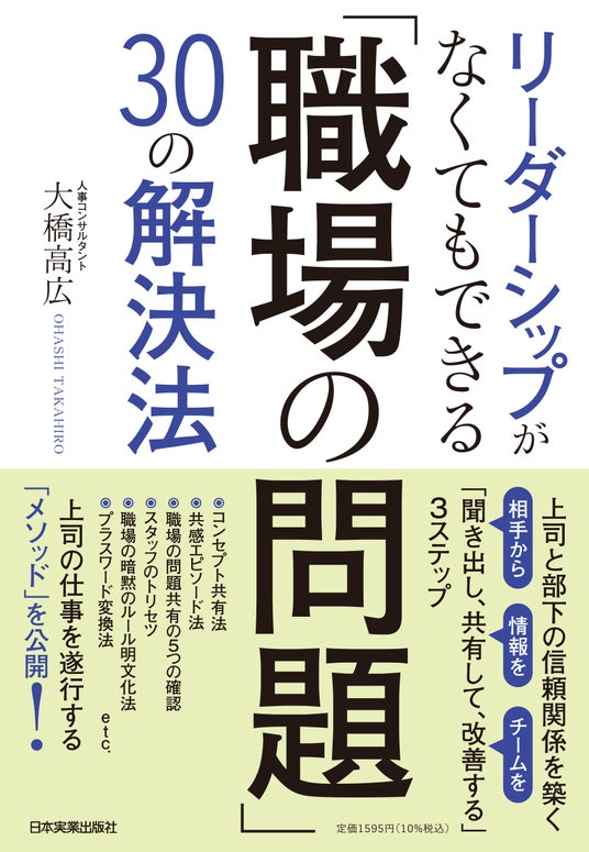 当日ご参加いただいた方には、講師である大橋様の著書「リーダーシップがなくてもできる 『職場の問題』30 の解決法」(日本実業出版社)を進呈いたします。