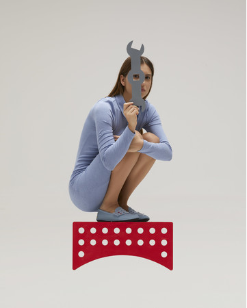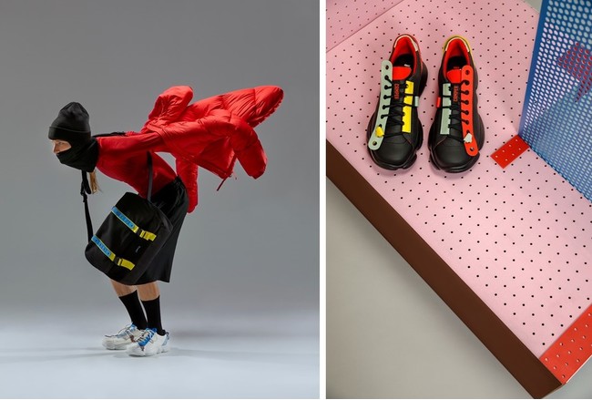 メカニカルなデザインながらも手作り感を大切にしたこのコレクションは、異なるカラーと異なるピースを繋ぎ合わせた、大胆なモザイクのようなデザインが特徴的。パンチングホールのパーツなどアナログ感をプラスしながらも、スポーティでテクニカルな素材使いで、都会的で現代的なスマートさを演出。
