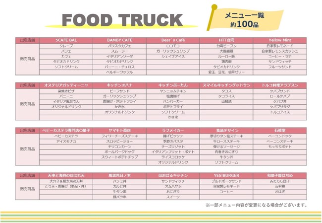 見るだけでもワクワクする個性豊かなフードトラック20店舗が出店決定!