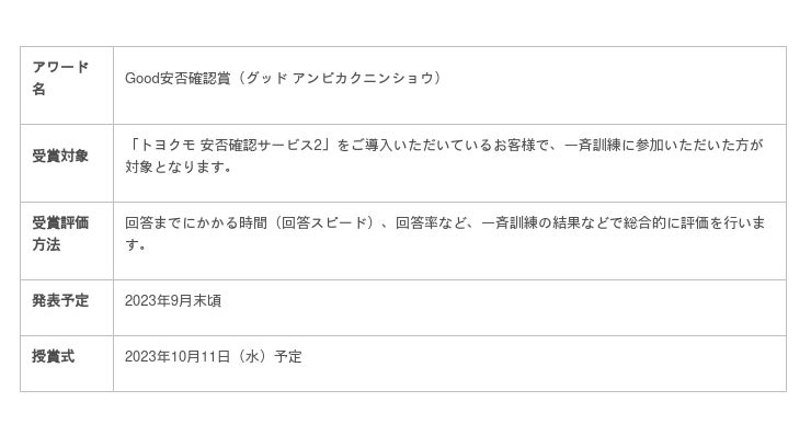 「Good安否確認賞」概要