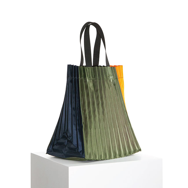 無地のワンピースやデニムなど、シンプルなコーディネートにも映えるプリーツバッグ。アースカラーを基調とした3色がアクセントに。伸縮性のある素材で、収納力が高いのも魅力です。プリーツのひだは崩れにくい特殊加工が施されています。