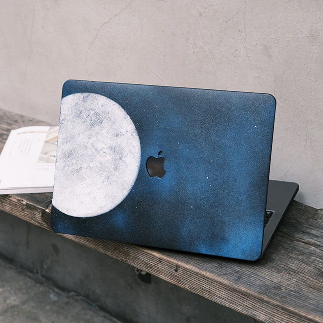 夜空に浮かぶ月が描かれたMacBookケース。一つひとつ手作業で描かれているため、ひとつとして同じものはないのだそう。人とは被らないユニークなケースを探している人におすすめです。