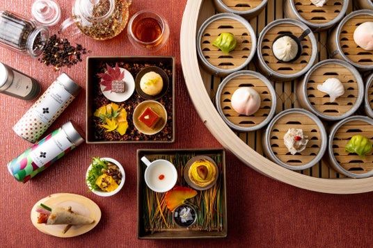 そして、現在、ティータイム(15:00~17:00)で好評をいただいているチャイニースアフタヌーンティーの提供時間を、2024年秋から拡大いたします。ランチは限定10名様まで、ディナータイムはお食事としてもお楽しみいただけるようセイボリーメニューを増やした限定15名様の特別プランをご用意しました。