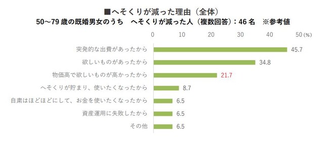 へそくり金額は昨年よりも減少し、物価高の影響もみられる