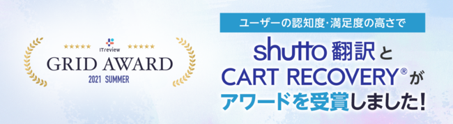 “おもてなしを科学する”株式会社イー・エージェンシー(本社:東京都千代田区、代表取締役:甲斐真樹)が提供するWebサイト翻訳サービス「shutto翻訳(しゅっと ほんやく)」ならびにカゴ落ち特化型MAツール「CART RECOVERY」は、2021年7月14日に発表されましたアイティクラウド社主催の「ITreview Grid Award 2021 Summer」において、ユーザーから高い評価を受け、それぞれの部門でアワードを受賞しました。