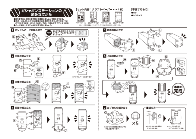 ガシャポン好きな方からペーパークラフト好きな方まで、幅広い層の皆さまに楽しんでいただき、また、一緒に組 み立てることで親子のコミュニケーションにも役立てていただける商品となっております。