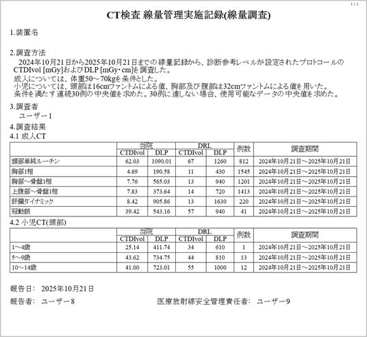 日本医学放射線学会が提供するフォーマットに準拠したレポートをワンクリックで自動生成します。これにより、事務作業の負担軽減と監査対応の効率化を実現します。