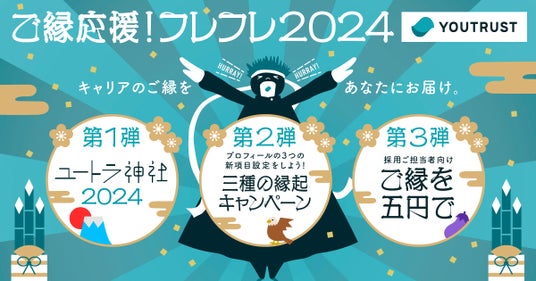 キャリアSNSおよびHR Tech SaaS「YOUTRUST」を提供する株式会社YOUTRUST(本社:東京都渋谷区、代表取締役CEO:岩崎由夏)は、キャリアのご縁を結び、ビジネスパーソンのキャリアを全力応援する新年特別企画「ご縁応援!フレフレ2024」を開催いたします。