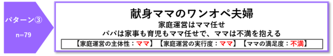 パパの育児参加も3分類の中で最も低く、パパに対する「子供の親」としてのママの評価が低く、ママが不満を感じていることが特徴です。
