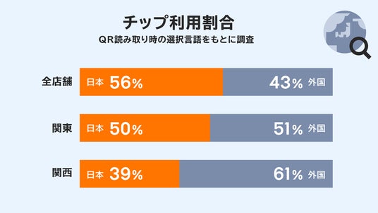 2025年5月12日(月)から一部店舗での先行検証を開始し、チップ利用者の割合を国別に調査。(※4)「日本語」選択者が約56%、その他言語(英語・中国語・韓国語)の選択者が約43%という結果になり、意外にもチップに馴染みがあまりない日本人の利用割合が高いことがわかりました。