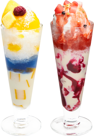 新商品の「夏ごおりサンデー」は、ブームの続くかき氷はシャリッと食感で、そこにほんのり酸味が効いた爽やか豆乳ラッシーと、色鮮やかで目を引くピューレやゼリーなどを加えました。それぞれの具材単体で食べても楽しめ、氷が溶けていく過程ではそれらの具材が混ざり合い、ドリンクのようにゴクゴク飲める。