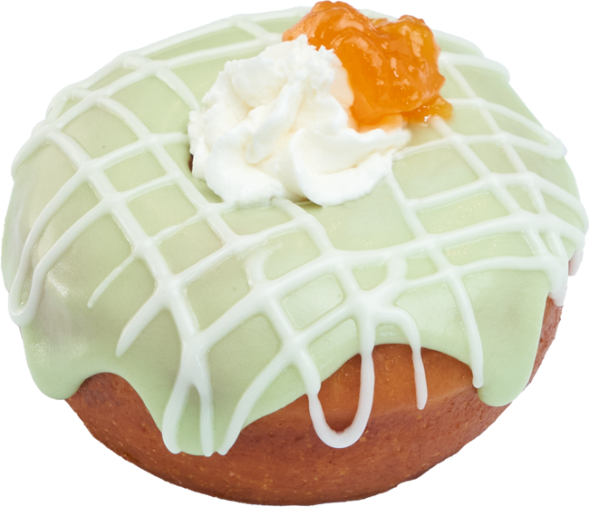 爽やかなレモン風味のプラントベースバタークリームの上にジューシーな赤肉メロンジャムをトッピングすることで、プラントベースバタークリームのなめらかな口どけの中に赤肉メロンジャムと緑肉メロングレーズの芳醇な香りと味わいを楽しめます。2種類のメロンを口いっぱいに楽しめる、リッチで贅沢なメロンドーナツです。