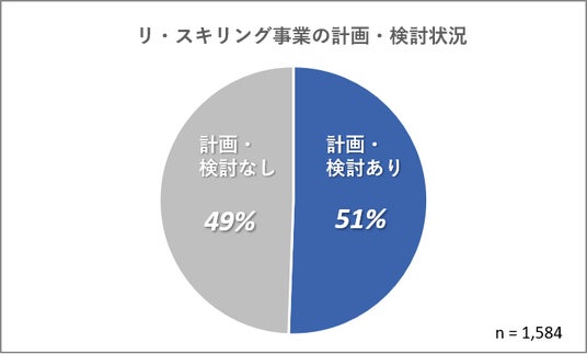 ヒアリング調査を完了した自治体1,584のうち、約半数に当たる801自治体(51%)が、リ・スキリング事業を計画または検討していることが分かりました。【図1参照】