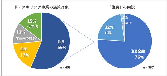 この結果からは、リ・スキリング事業の施策を地域における雇用創出、特に起業家の輩出による新たなビジネスの創出につなげたいという自治体の期待があることがうかがえます。