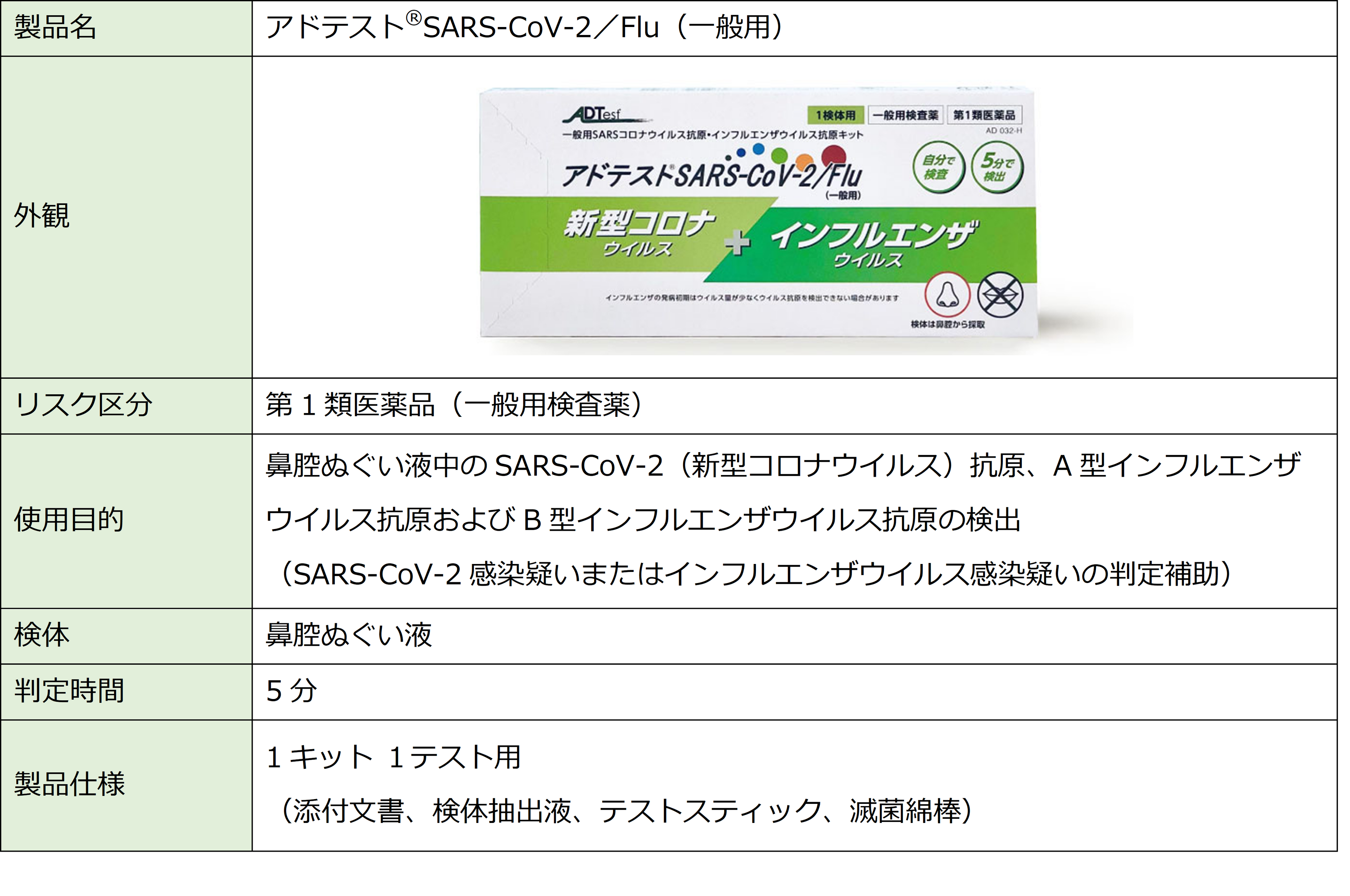 本契約に基づき、ウェルネス・コミュニケーションズが提携する医療機関や企業のお客様にシオノギヘルスケアが販売する新型コロナウイルスおよびインフルエンザ(A型・B型)感染症の一般用検査薬「アドテスト(R)SARS-CoV-2/Flu(一般用)」(以下「本検査薬」)をご案内していきます。