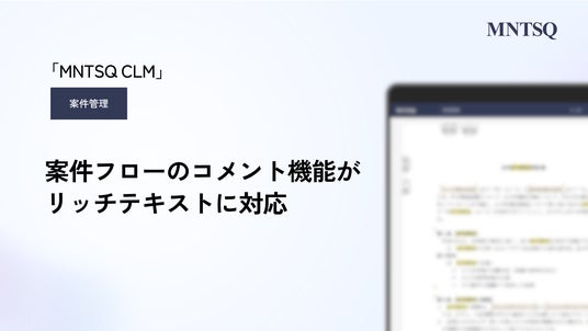 MNTSQ株式会社(本社:東京都中央区、代表取締役:板谷 隆平、以下「当社」)は、「MNTSQ 案件管理」内の「案件フロー」機能において、コメント入力フォームのリッチテキスト編集を可能にしたことをお知らせいたします。