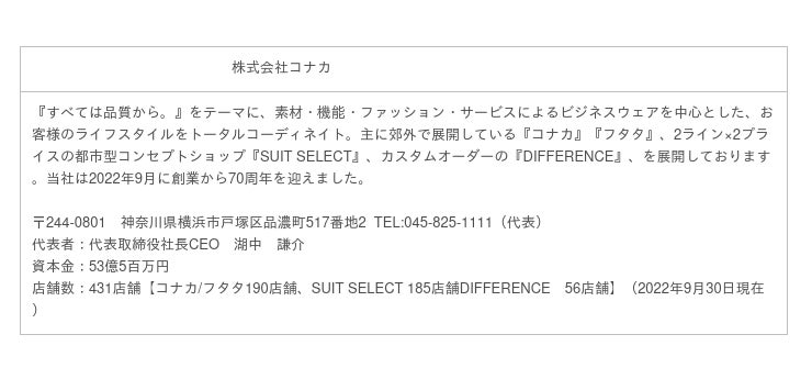 株式会社コナカでは、お客様の利便性と接客サービスの向上により、さらにショッピングを楽しんでいただけるよう今後も取り組んでまいります。