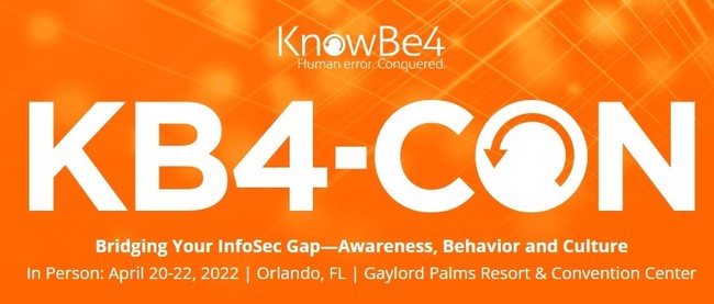次年度の年次コンファレンスKB4-CON 2023のお知らせ:KB4-CON 2023は、2023年4月24日~26日に米国フロリダ州オーランドのGaylord Resort and Convention Centerで開催されます。ご期待ください。