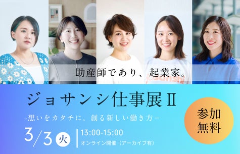 株式会社With Midwife(本社:大阪府大阪市、代表取締役:岸畑聖月、以下With Midwife)は、助産師向けリスキリングプログラム「License says(ライセンス セズ)」の一環として、2026年3月3日(火)13:00~15:00、助産師を対象とした無料オンラインイベント「ジョサンシ仕事展II」を開催いたします。