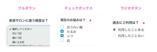 フォーム作成機能を使うことで、性別・お悩み・サービスの利用頻度などさまざまなアンケートの作成・実施ができます。