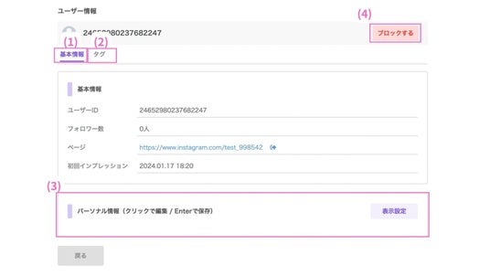各ユーザーのページでは、下記の4つの項目を確認できます。