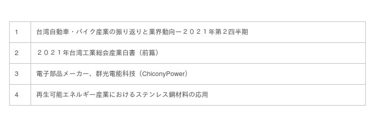 台湾自動車・バイク産業の振り返りと業界動向ー2021年第2四半期