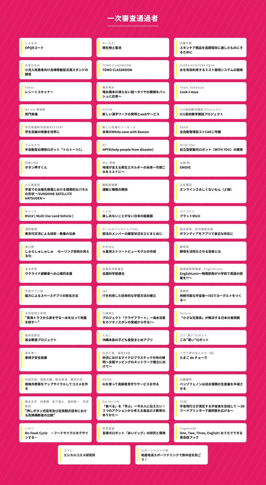 そうした思いで「自ら課題を設定し、アイデアをカタチにして解決していく」中高生を表彰する取り組みです。