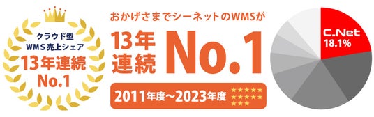 倉庫管理システム(以下、WMS)の開発提供を手掛ける株式会社シーネット(以下シーネット、本社:千葉県千葉市、代表取締役兼CEO:小野崎伸彦)は、デロイトトーマツミック経済研究所株式会社が発刊した調査レポート『スマートロジスティクス・ソリューション市場の実態と展望【2024年度版】』において、2023年度クラウド型WMS売上シェアの18.1%を獲得し、No.1を獲得したことをお知らせします。