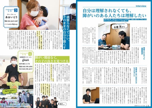 ●特集「このまちに暮らす、CHALLENGED わたしたち」では、関係者一人一人の声を丁寧に取り上げており、読み応えのある内容になっている。また、全体として、見やすいレイアウトになっている。