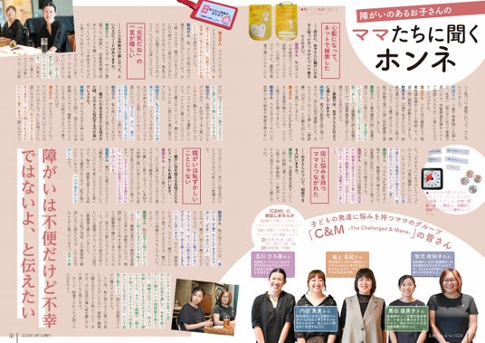 子どもの発達に悩みを持つママのグループ「C&M」の皆さんによる座談会。我が子に障がいがあると知ったときの戸惑いから、地域での「こんな声かけが嬉しかった/悲しかった」など、ママたちのホンネを語ってくださいました。