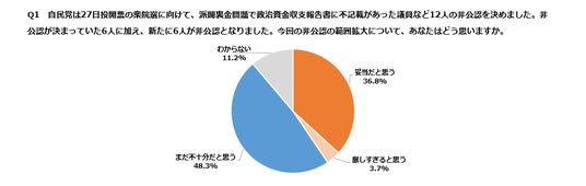-- 非公認拡大「投票に影響ない」26%、当選後の追加公認に反対54% --