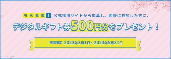 公式採用サイトから応募し、面接に参加した方に、デジタルギフトをプレゼントするキャンペーンを実施中。
