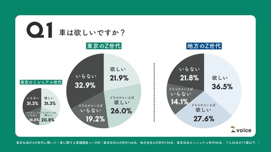 Z世代向けの企画・マーケティングを行う『僕と私と株式会社』は、全国のZ世代302人(東京在住146人+地方在住156人)、および東京在住のミレニアル世代96人を対象に、車に関する意識調査を実施しました