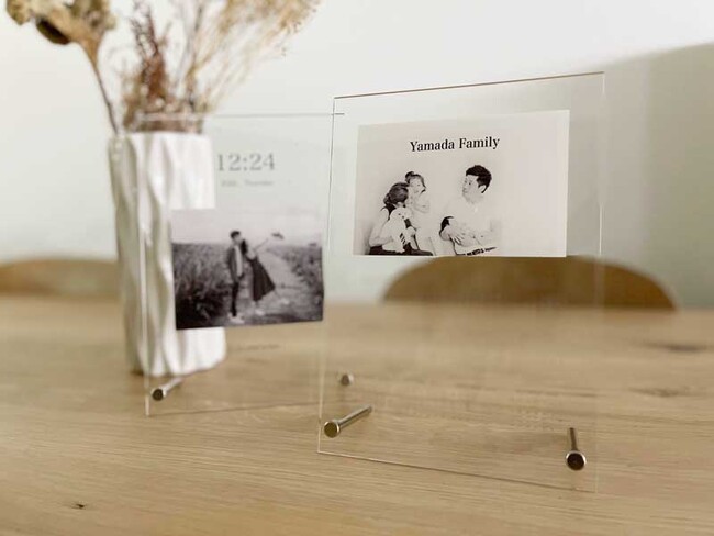 表面がクリアで美しい透明アクリルの裏面から直接、フルカラーでプリントするオリジナルアクリルスタンドです。写真サイズに合わせてサイズをお選びいただけます。出産・結婚・入学・家族との思い出の写真など記念日やお祝い事をオリジナルのアクリルスタンドで飾ってみませんか。