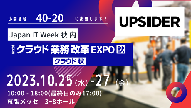 「挑戦者を支える世界的な金融プラットフォームを創る」をミッションに、法人カード「UPSIDER」(以下、UPSIDER)およびビジネスあと払いサービス「支払い.com」を提供する株式会社UPSIDER(代表取締役:宮城徹・水野智規、本社:東京都港区、以下 当社)は、RX Japan株式会社が10月25日~27日に開催する下半期最大級のIT展示会「第14回 クラウド業務改革EXPO[秋]」に出展いたしますので、お知らせします。