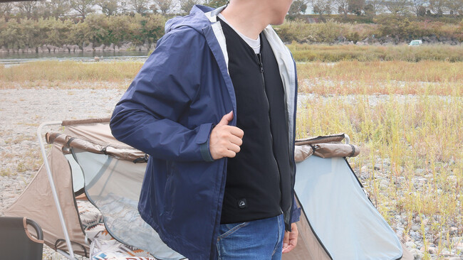 これからのアウトドアレジャーや、外での作業などで着られる、インナーベストとして最適なヒーティングベストでどんな服装でも邪魔をしません。別売のモバイルバッテリーとの併用で動作を行うので、本体自体の重量は非常に軽いです。
