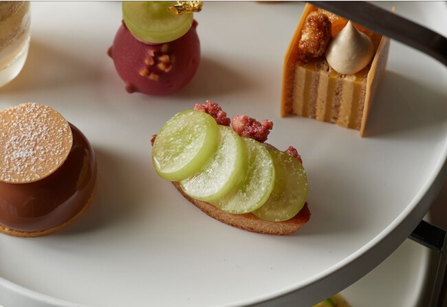 夏から秋にかけて旬を迎えるシャインマスカットを主役に、秋の果物を詰め込んだ季節感あふれるアフタヌーンティーがはじまります。