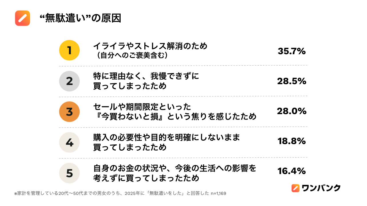 “無駄遣い”の主な原因1位は「イライラやストレス解消のため」