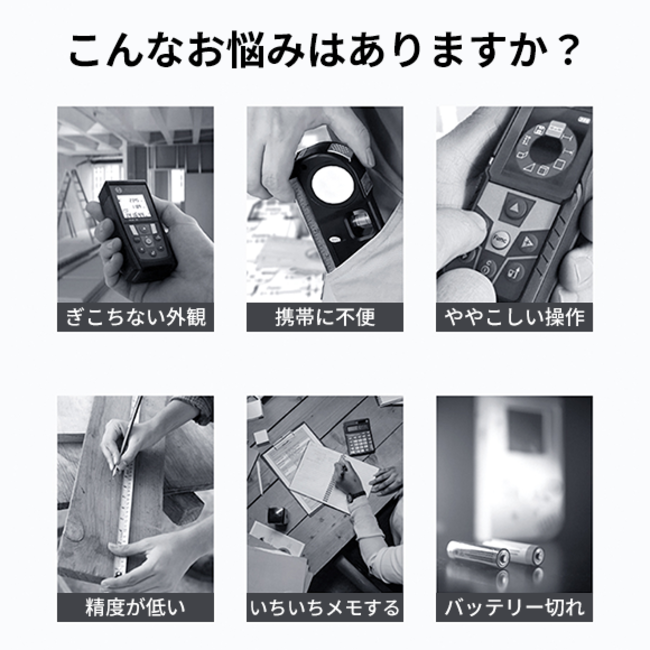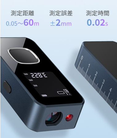レーザー測距技術を採用しており、ボタンを押すだけで、長さ・面積・体積などのデータをリアルタイムで測定できます。
